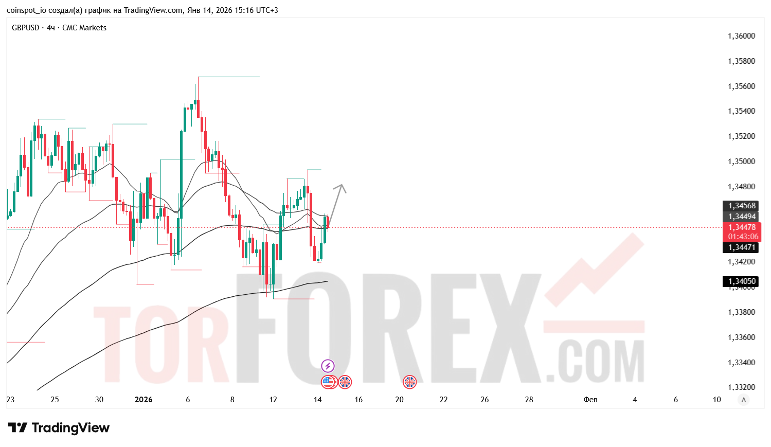 На 15 января 2026 года GBP/USD сохраняет нейтрально-бычью структуру с признаками консолидации. Основной сценарий — продолжение роста к 1.34800–1.35200 USD при пробое зоны сопротивления. Альтернативный сценарий — откат к 1.34000–1.33750 USD при отказе от уровня 1.34453 USD.