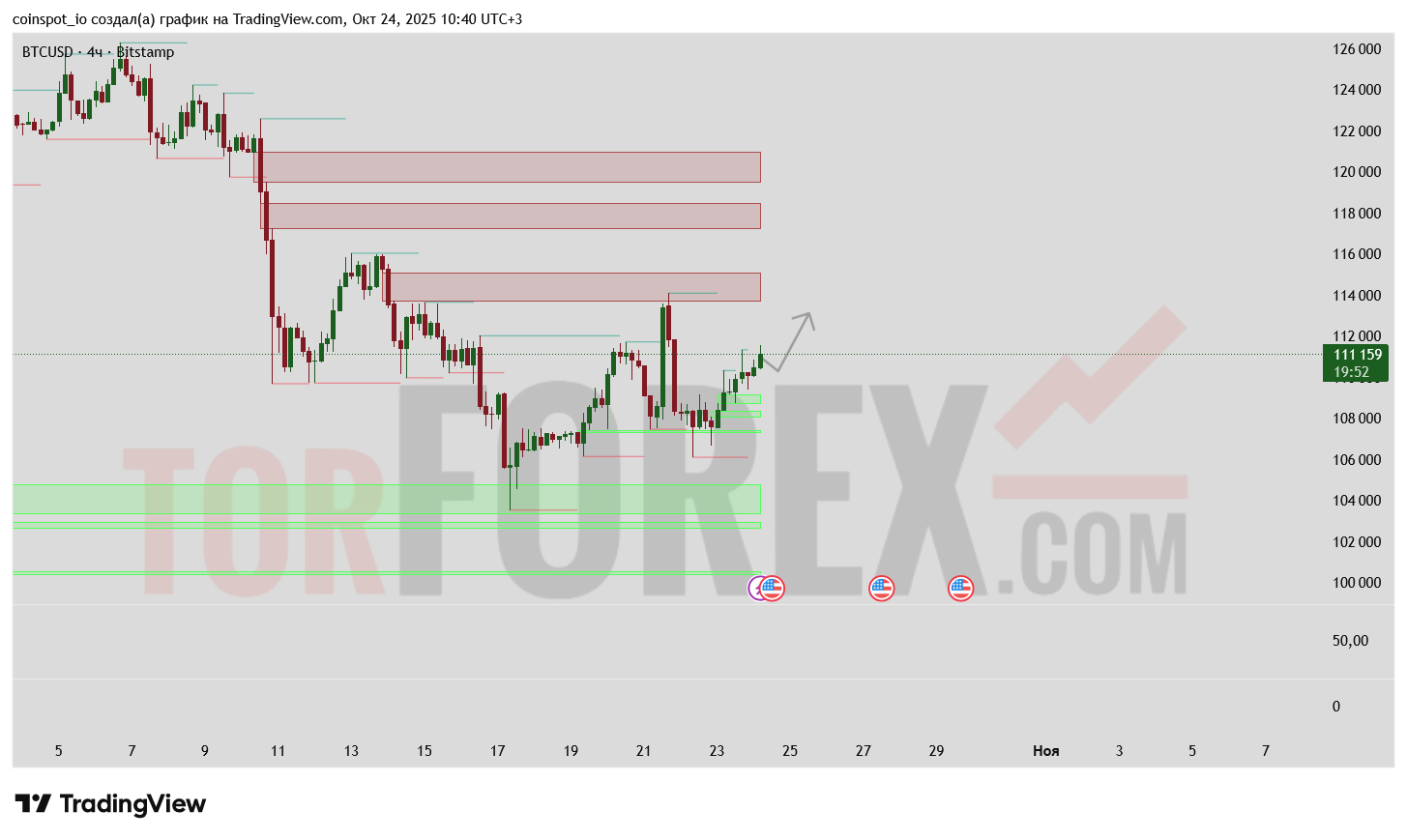 Цена восстановилась от уровня 108 000 и тестирует зону 111 000-112 000