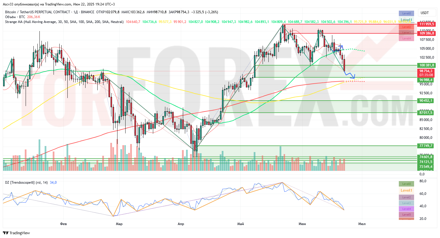 В случае сильной реакции покупателей и удержания зоны EMA 200, возможен отскок в район $102 000–$105 000. Однако это будет восприниматься как технический ретест до возобновления снижения.