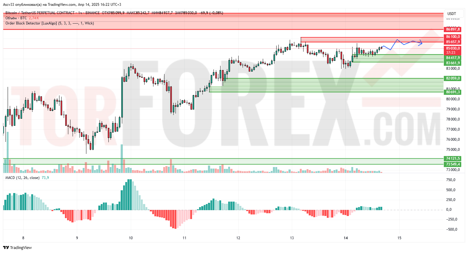 Прогноз Биткоин Доллар BTC/USDT на 15 апреля 2025