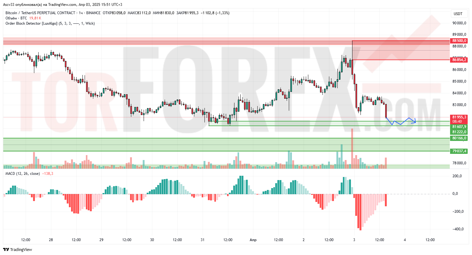 Ожидается фаза стабилизации в районе $81 200–$82 000. При удержании текущей зоны поддержек возможен отскок к $83 000–$84 000. Однако если продавцы продавят ниже $81 200 — откроется путь к $80 000 и ниже.