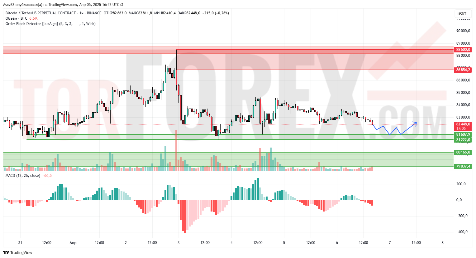 Ожидается тест зоны поддержки $81 600–81 200. При удержании этих уровней возможен отскок в направлении $83 500–84 000. Если же давление сохранится и произойдёт пробой вниз, следующей целью станет район $80 000.