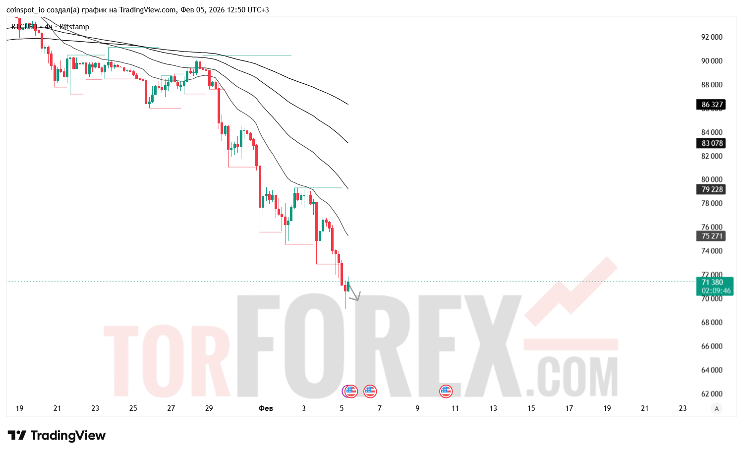 На 6 февраля 2026 года приоритет остаётся за снижением.btcusd-prognoz-06.02.2026