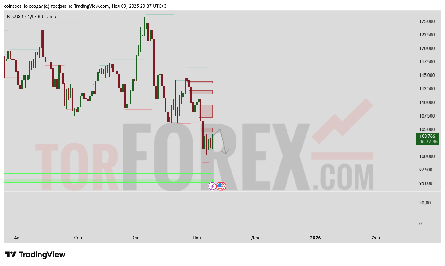 - Заполнение FVG-зоны усилит вероятность снижения к 99 000–98 500 USD.
