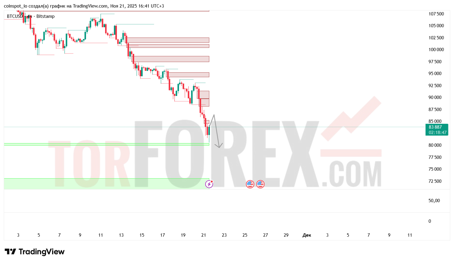 - Нижняя FVG: 81 000–79 500 USD — остаётся незаполненной и может притянуть цену при продолжении снижения