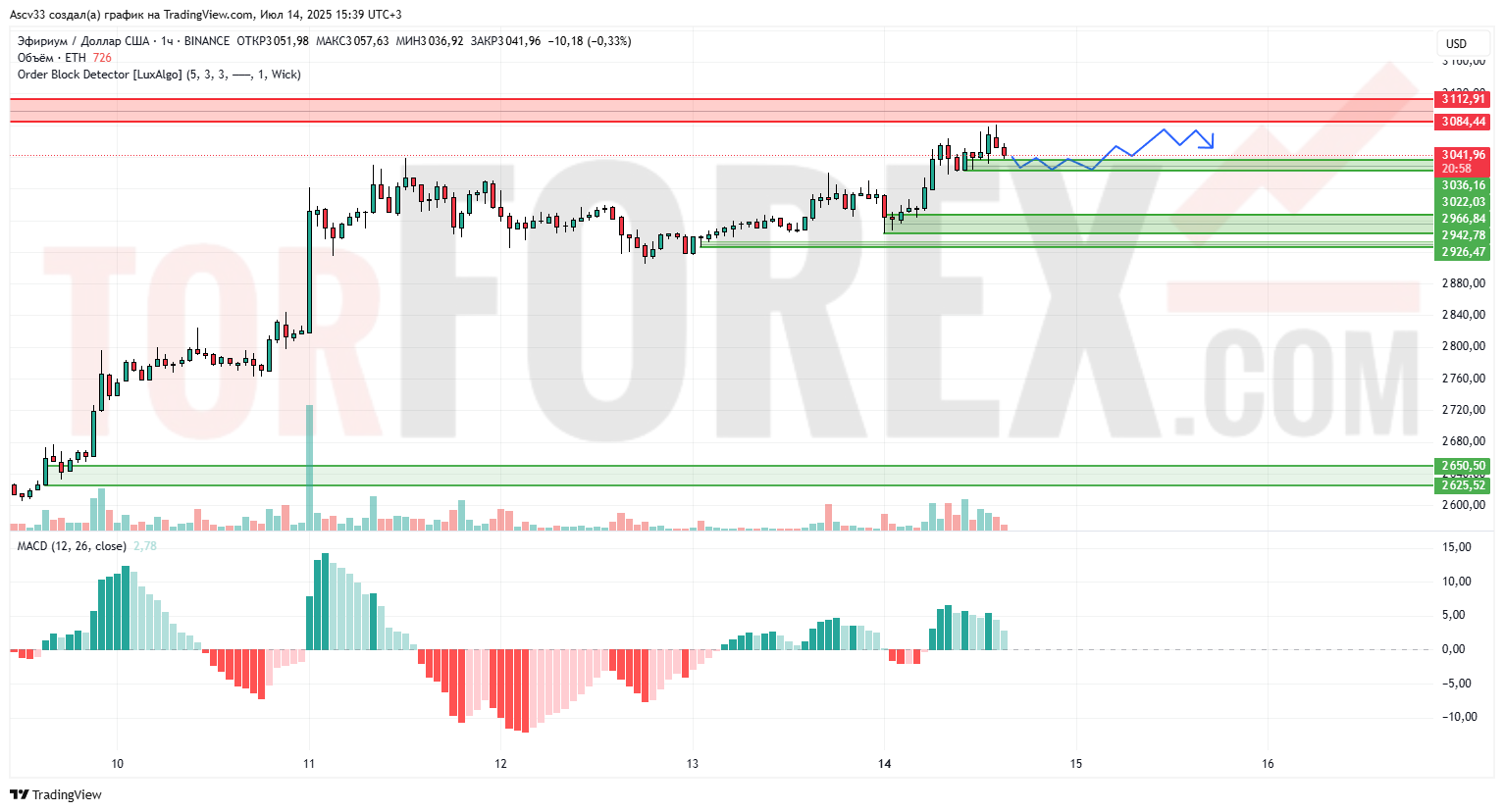 3 036–3 022 — локальная поддержка, удерживающая цену в узком боковике.