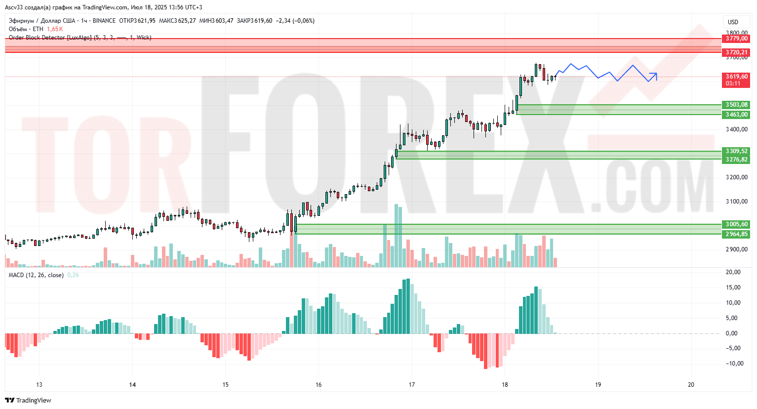 3 500–3 460 — ближайшая зона покупателя, откуда начался последний импульс. Удержание этой зоны сохранит бычий сценарий.
