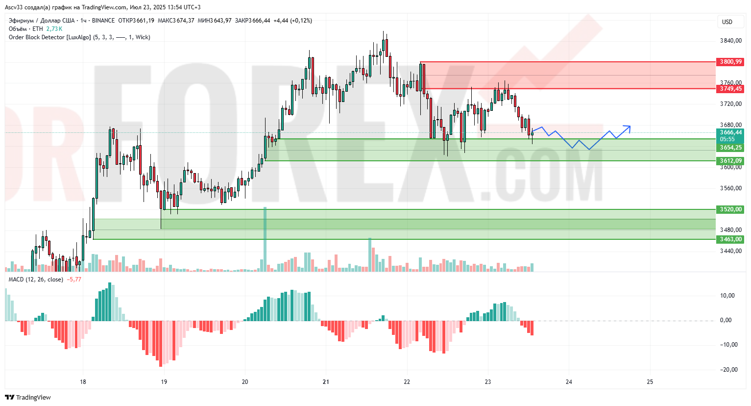 3654 — 3612— ближайший уровень, который удерживает цену.