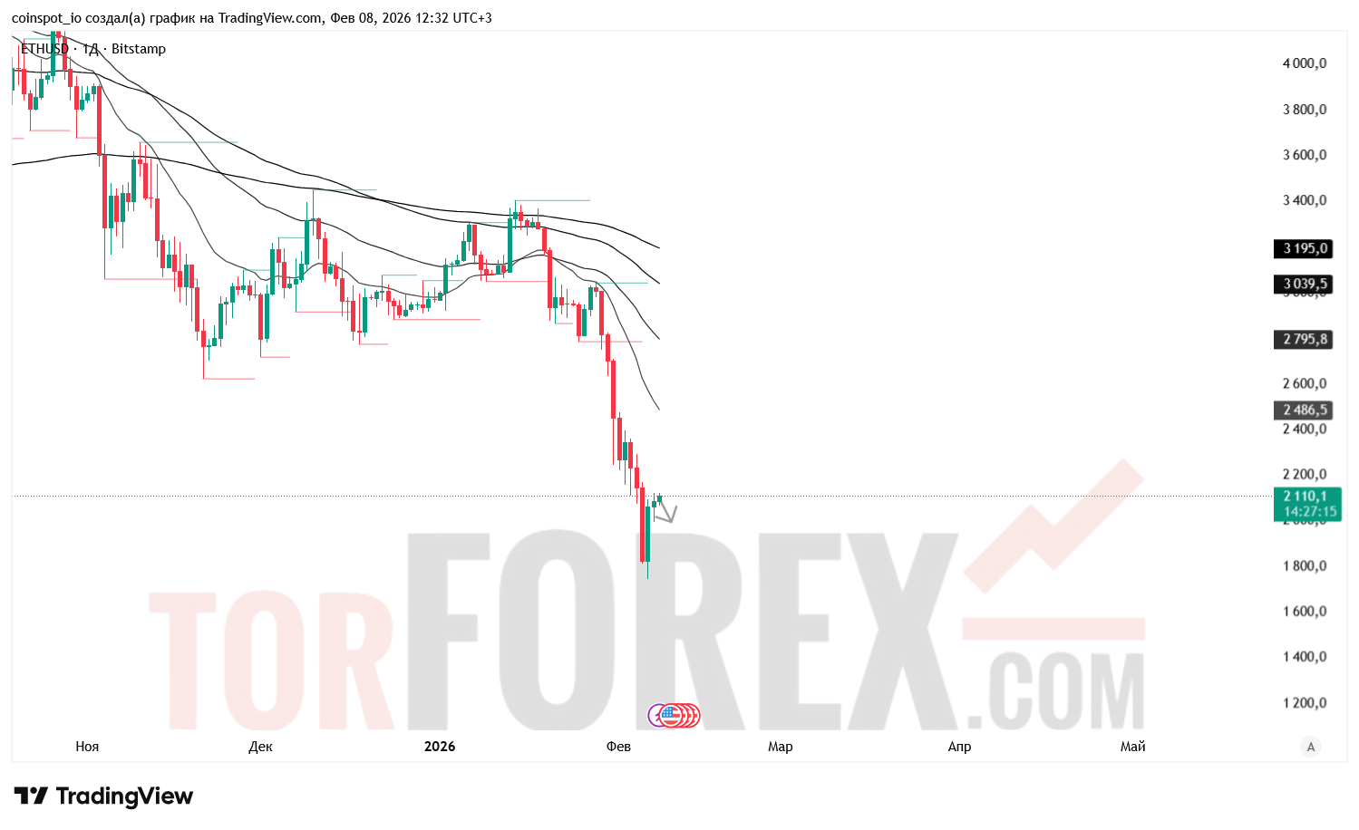 ETH/USD сохраняет устойчивый нисходящий контекст. Локальная консолидация в диапазоне 2 050–2 120 USD может привести к краткосрочному откату, но структура рынка остаётся медвежьей. Основной интерес представляет работа в направлении тренда.