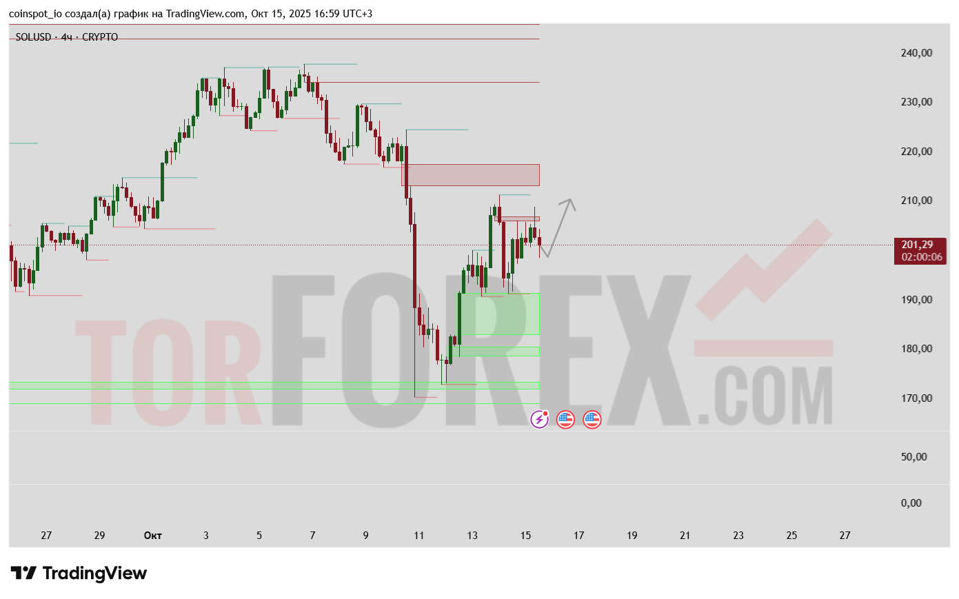На 16 октября 2025 года наиболее вероятна волатильность в диапазоне 195-210 USD. Торговые идеи следует строить от границ этого диапазона: