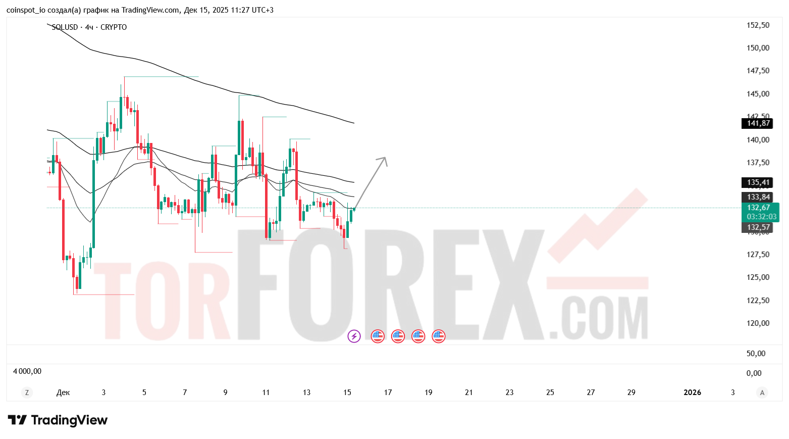 На 16 декабря 2025 года SOL/USD демонстрирует признаки восстановления. Основной сценарий — рост к 136.00–138.50 USD при пробое сопротивления. Альтернативный сценарий — снижение к 128.00–125.50 USD при отказе от уровня 134.00 USD.