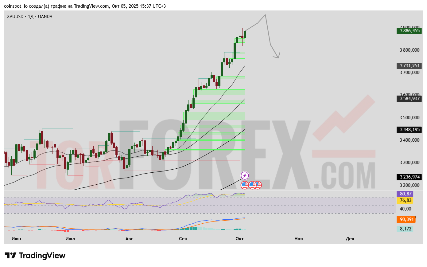 Для покупателей (лонгов): Покупки рассматриваются только при уверенном пробитии сопротивления 3950 с закреплением выше. В этом случае вход возможен на ретесте пробитого уровня. Стоп-лосс устанавливается ниже 3880, а целью выступает тестирование уровня 4010.