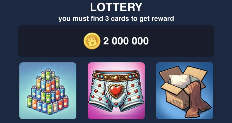 Игра Bums быстро стала популярной в жанре тапалок. Её основная цель — постепенно развивать персонажа от бездомного до успешного человека. Параллельно вы сможете заработать ценные токены!