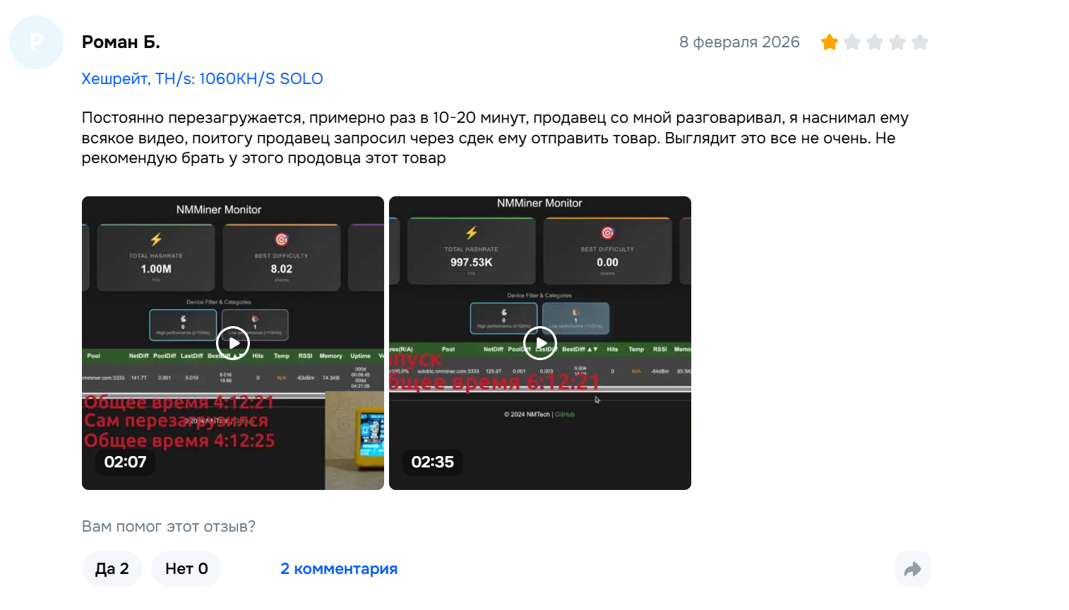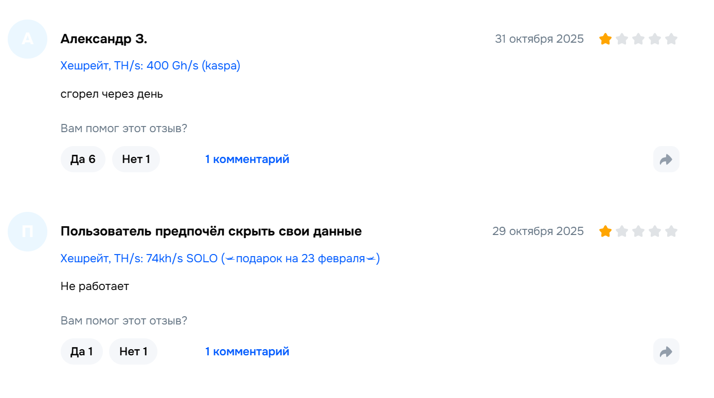 На Озоне отзывы об Avalon Q 90th S для майнинга довольно позитивные, рейтинг товара составляет 4,8. Быстрота доставки, удобство в домашнем использовании, быстрая настройка и прочие плюсы отмечены в более чем 200 сообщениях. Из негатива — при доставке товар может быть испорчен, придется возвращать и заново ждать поставку. Некоторые майнеры сбоят, в таком случае инвестор простаивает, пока отдает оборудование в сервисный центр. Основная претензия: хешрейт ниже заявленного, а нагрев — выше.