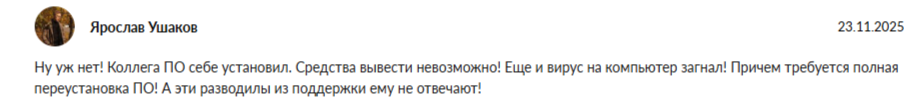 - На сторонних площадках есть множество жалоб в адрес разработчиков софта.