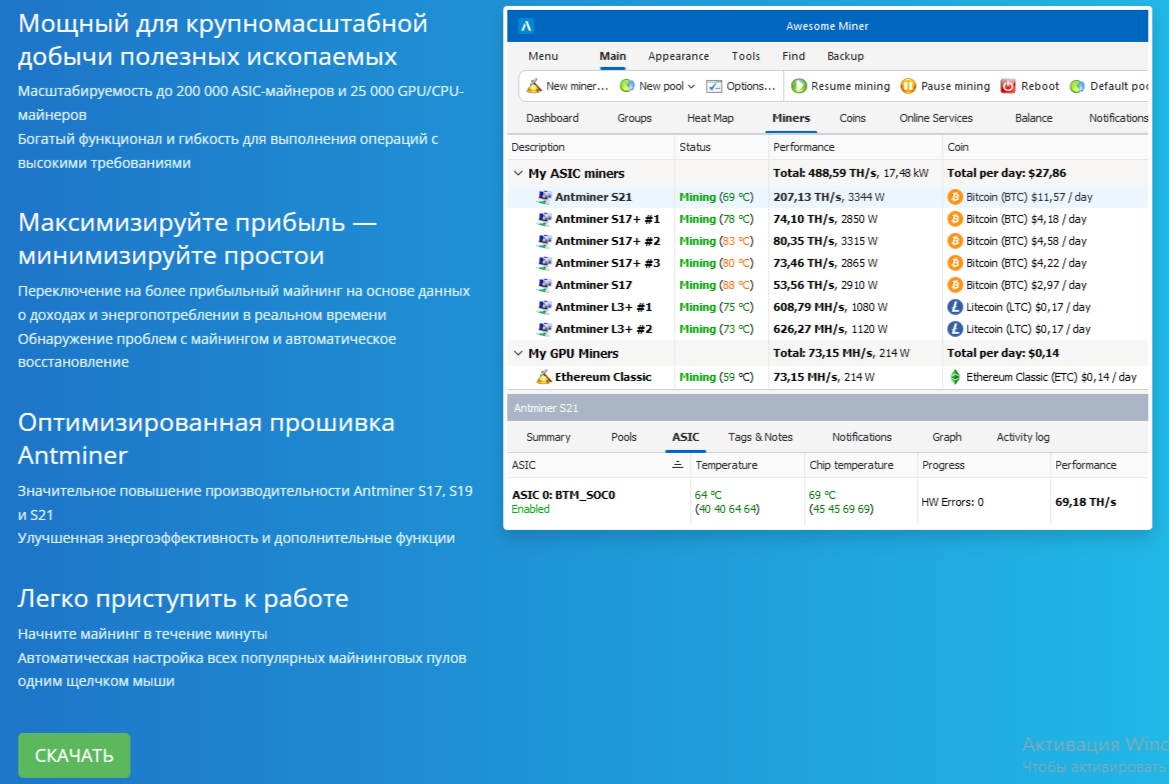 Проверка приложения AwesomeMiner: технические возможности, настройка Awesome Miner и реальные отзывы о проекте «Авесом Майнер» от клиентов