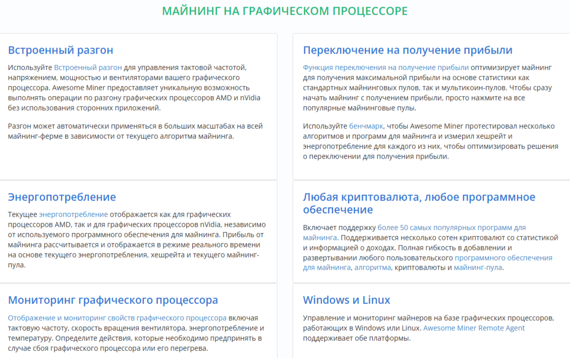 Awesome Miner — это программное обеспечение, при помощи которого пользователи могут отслеживать свои майнинговые процессы. Работает инструмент более чем с 200 ригами, а за всеми операциями можно следить на одном информационном табло. Однако о данном приложении в сети довольно много негативных комментариев, что наводит на мысль об обмане со стороны разработчиков.