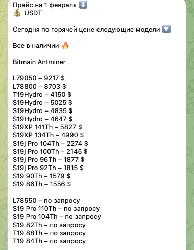 На 16 января 2026 года на ТГК остаются подписанными 73 пользователя. Посты в его ленте собирали в среднем по 70-90 просмотров и 1-2 реакции. Функцию комментирования админ отключил.Контент на телеграмм-канале представлял собой презентацию моделей ASIC-ов, которые продавцом подготовлены для реализации.