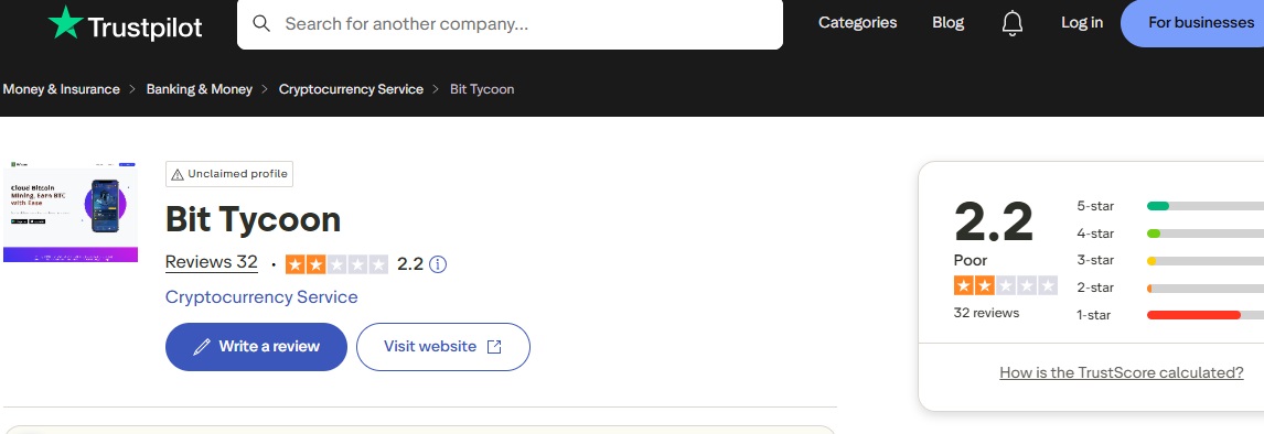 Стоит начать с того, что практически все отзывы о Bittycoon носят негативный характер. Прежде всего хочется отметить общий рейтинг проекта, составленный известным сервисом-отзовиком. Судя по всему, приложение откровенно не нравится пользователям, ведь имеет всего 2,2 звезды из 5 возможных.