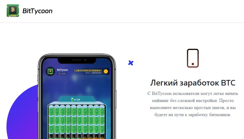 Сам процесс майнинга на Bittycoon представлен в формате мобильной игры. Пользователю нужно выполнить несколько шагов для добычи криптовалюты. Кстати, процесс может быть автономным. Требуется лишь подключение мобильного устройства к интернету.