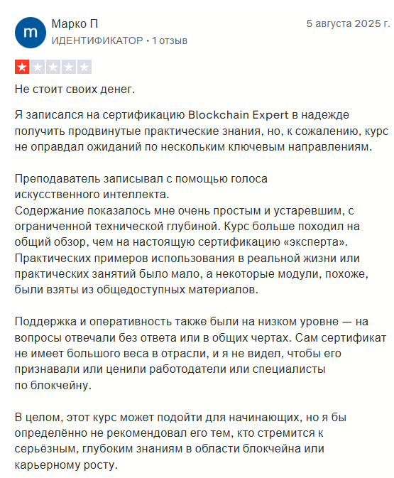 Blockchain Council работает восемь лет и предлагает десятки курсов по блокчейну, крипте и ИИ. Но реальность не соответствует обещаниям. Ключевые проблемы: