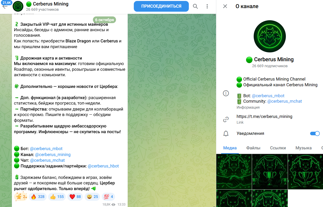 Тг-канал Cerberus Community поддерживает аудитория из 26.6 тыс. пользователей, которая активно читает посты.