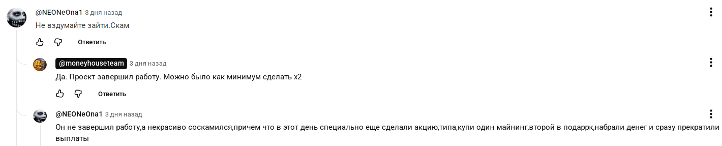 На деле участие в проекте совсем не гарантирует никакой прибыли. Под роликами блогера на «Ютьюб» канале люди часто оставляют негативные комментарии.