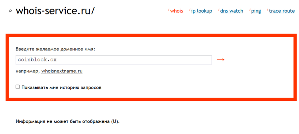 Проверка срока работы сервиса Coin Block не дала никаких результатов. Нам неизвестно, когда был зарегистрирован доменный адрес и когда перешел указанному сайту. В архиве тоже не оказалось никакой информации. Только мошеннические сайты скрывают о себе элементарные данные, в том числе дату регистрации.