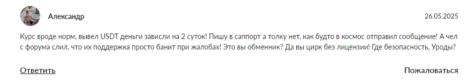 • Жалобы клиентов на блокировку средств под предлогом AML-проверки говорят о возможной мошеннической схеме работы.