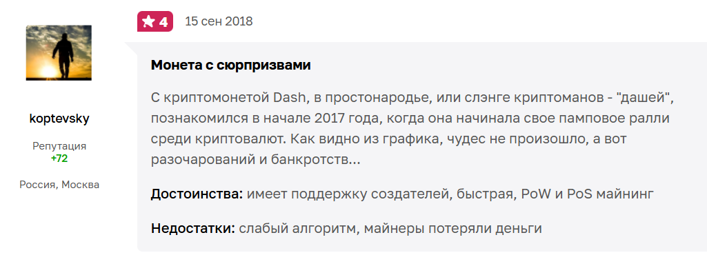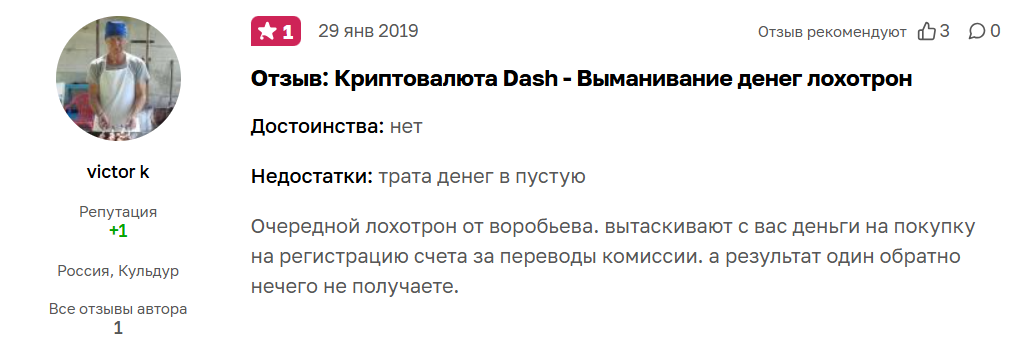 Мнения о криптовалюте Даш неоднозначные. Некоторые считают ее перспективной и выделяют скорость, дешевизну транзакций. Другие отмечают потерю денег и считают что Dash — скам. С отзывами об этой монете можно ознакомиться ниже: