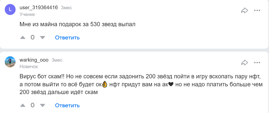 Доверять таким сервисам можно только в том случае, если вы изначально готовы потерять потраченные звезды и подарки без возможности возврата. Использовать их как способ хранения, перевода или заработка на подарках мы однозначно не рекомендуем.