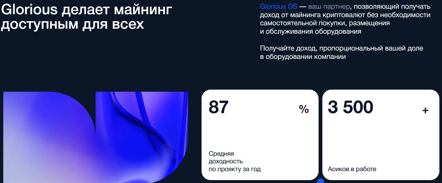 Глориус Дата Системс — российская компания, которая предлагает создание майнинг-фермы для клиента под ключ. Ее владельцы обещают закупить за деньги клиента оборудование, установить его на своих площадях и поддерживать работу фермы. Рассмотрим, насколько серьезно выглядит этот проект и стоит ли доверять ему свои деньги.