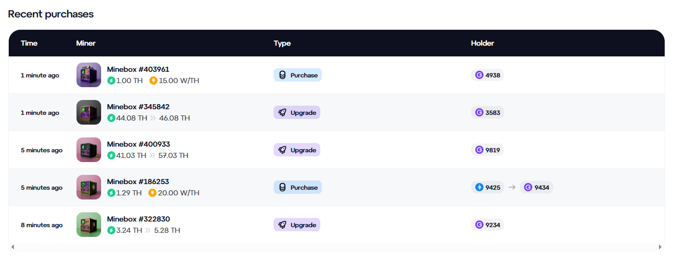 • Покупка майнеров. Приобрести NFT-токены можно как за BTC и USDT, так и за монеты GMT.