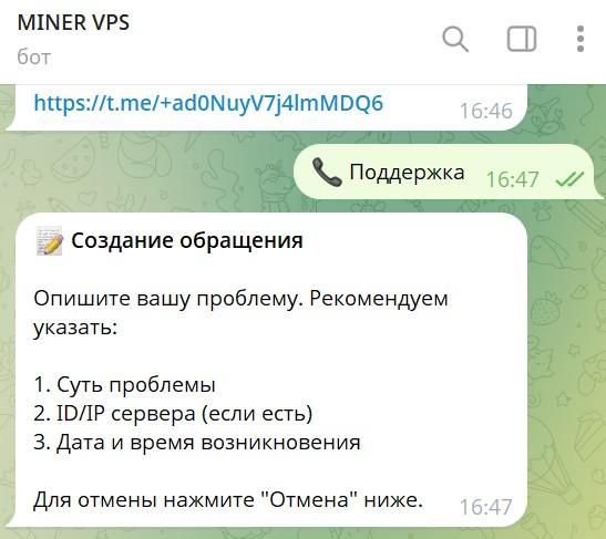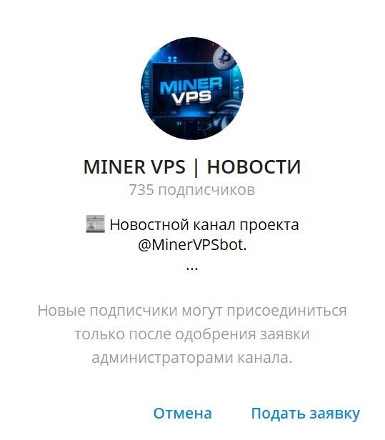 У проекта есть канал в Телеграме – «MINER VPS Новости». Сообщество закрыто. Попасть можно после одобрения заявки администратором.