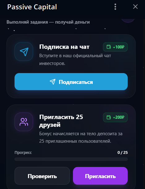 Обзор телеграмм-бота Passive Capital: отзывы о телеграм-проекте, заработок в «Пассив Капитал»