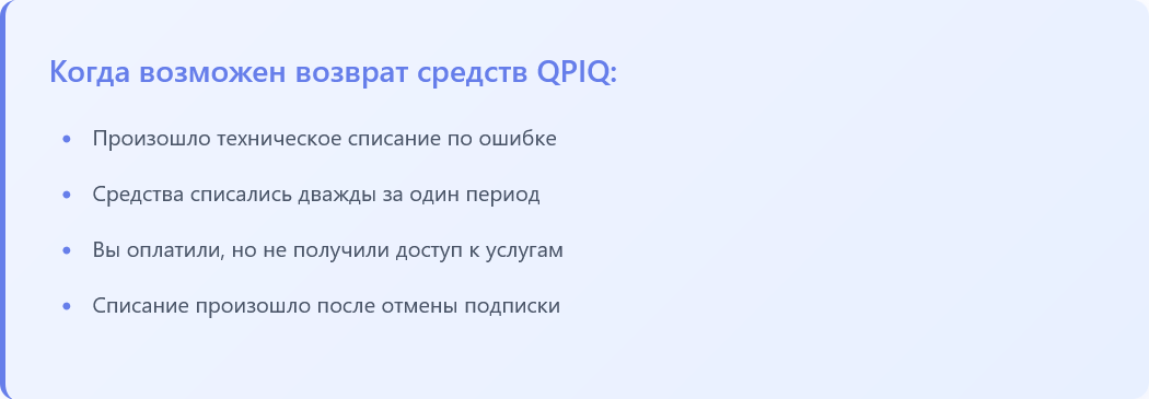 Основатели платформы предусмотрели возврат денег за доступ к возможностям ресурса в следующих случаях:
