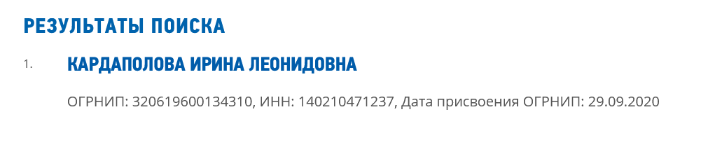 У проекта есть сайт, где указано, что компания зарегистрирована в качестве ИП Кардаполова Ирина Леонидовна. Такая фирма действительно существует, работает она с сентября 2020 года. Основной вид деятельности указан, как разработка программного обеспечения.