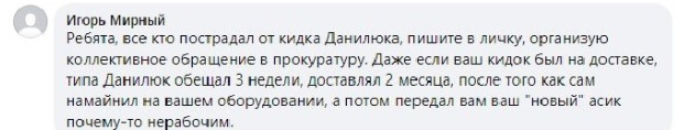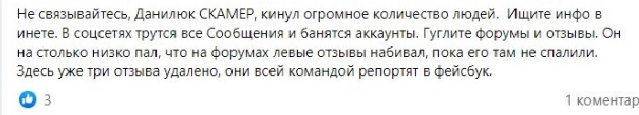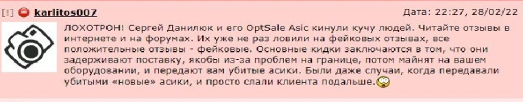 Проект Сергея зовут лохотроном, поскольку он не только накручивает отзывы, но и обманывает людей с продажей устройств для майнинга. В том числе Данилюк продает сломанные или некачественные майнеры и не возвращает за них деньги.