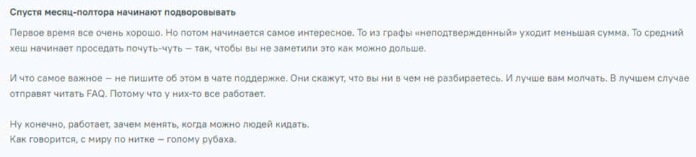 Обман Славы Чжоу заключается в финансовых убытках пользователей. На канале нет прозрачной информации. Мы не знаем подробности о работе проекта, владельцах и месторасположении оборудования. Организаторы скрывают информацию о себе, чтобы не нести ответственность, если обман вскроется. В результате пользователи только теряют деньги.
