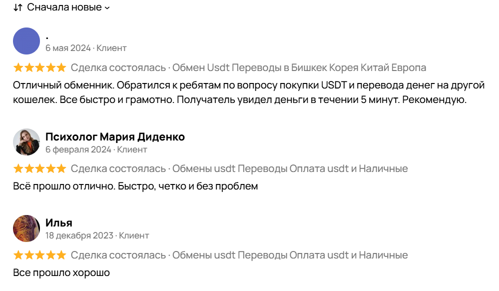 - положительные отзывы о Usdt obmen ru, а также об оказании других услуг Тарасом Черненко.