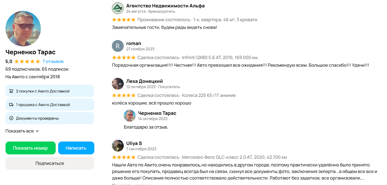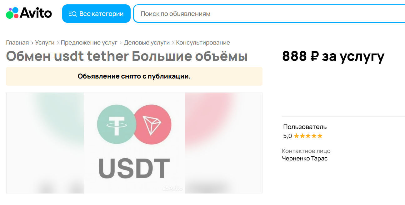 Несмотря на заявленное количество проведенных сделок USDT Tether Exchange, на сторонних сайтах о валютнике вообще нет никаких упоминаний, как и о качестве заявленных услуг. Все найденные нами отзывы о Usdt obmen сконцентрированы к объявлению Тараса Черненко на Авито. Согласно откликам, публикации которых начинаются с 2019 года, пользователи покупали у Тараса Черненко жесткие диски, майнинговые фермы, процессоры, а также обращались по вопросам обмена крипты. Все отклики положительные.