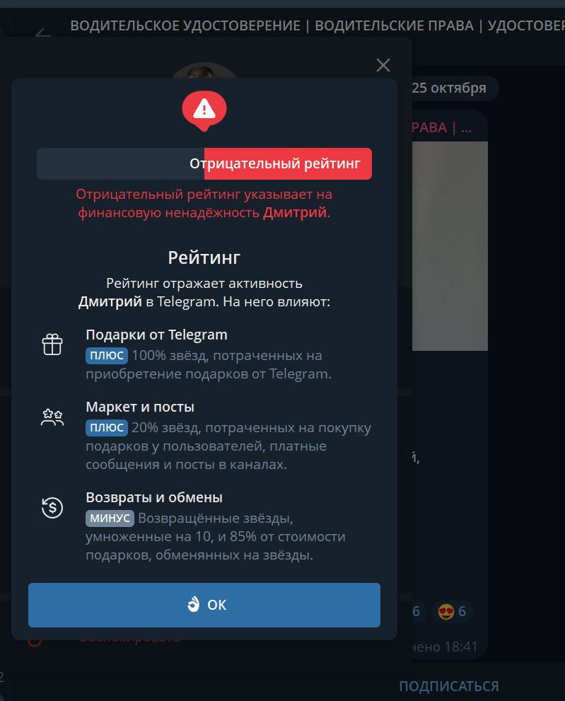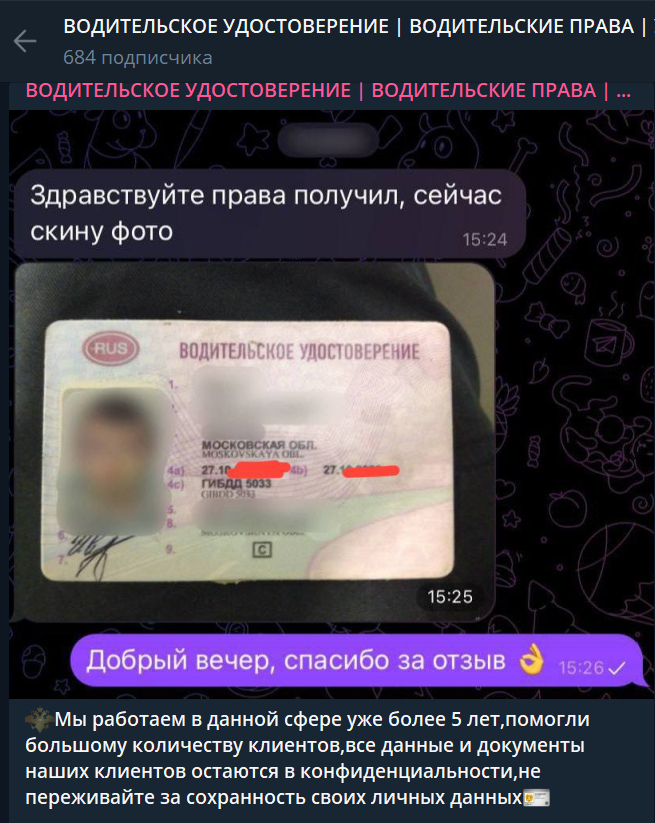 Судя по имени аккаунта, автора зовут Виктор, а свои услуги он предлагает на канале в Телеграмм с ником VoditelskoeRF12, но здесь практически нет подробной информации. Владелец утверждает, что занимается подобной деятельностью более пяти лет, но почему тогда клиенты оставили так мало отзывов о правах с помощью профиля с ником VitekMvd, непонятно. В постах встречается также другой представитель проекта по имени Дмитрий Гриняев, но Телеграмм показывает, что у него отрицательный рейтинг и низкая финансовая надежность.