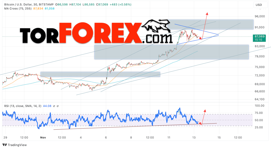 BTC/USD прогноз курса Биткоина на 14 ноября 2024