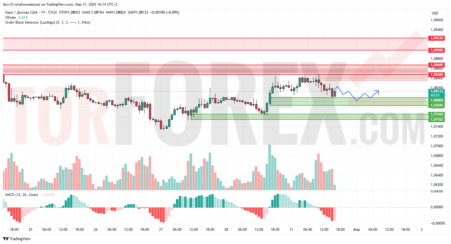 • 1,07845–1,08000 — ближайший уровень спроса; откат сюда может привести к новому интересу со стороны покупателей;