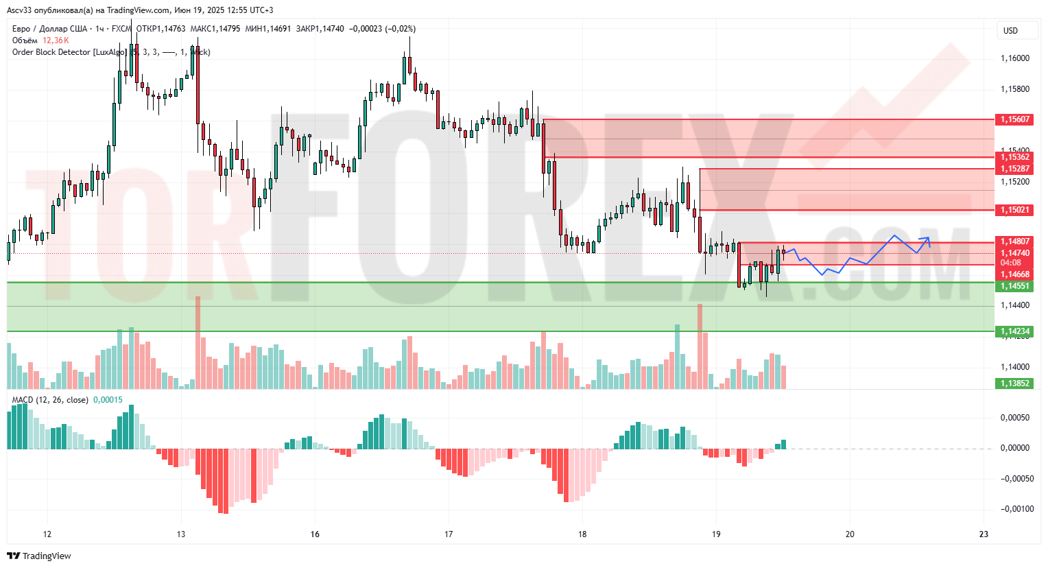 Сценарий краткосрочного роста до зоны 1,1500–1,1520 остаётся актуальным, при условии удержания поддержки в районе 1,1450. Если импульс усилится, возможен выход выше 1,1530. В противном случае пара может вернуться к тестированию 1,1423.