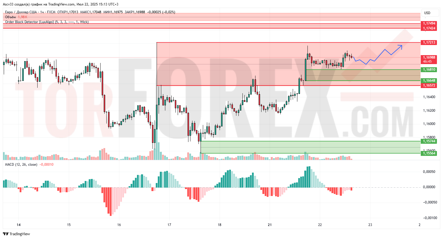 Зоны сопротивления: 1.16572–1.17213 — плотная область продавцов, в случае пробоя возможно движение к 1.17424–1.17494. Эти уровни ранее ограничивали рост.