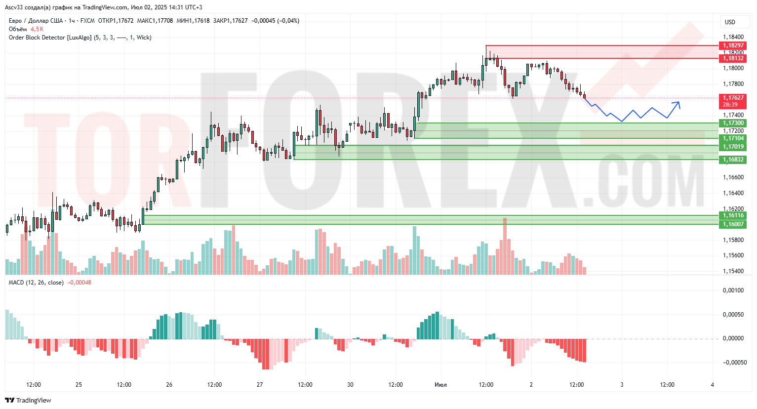 1,17300–1,17019 — ключевая зона спроса, неоднократно подтвержденная объемами и реакцией цены.