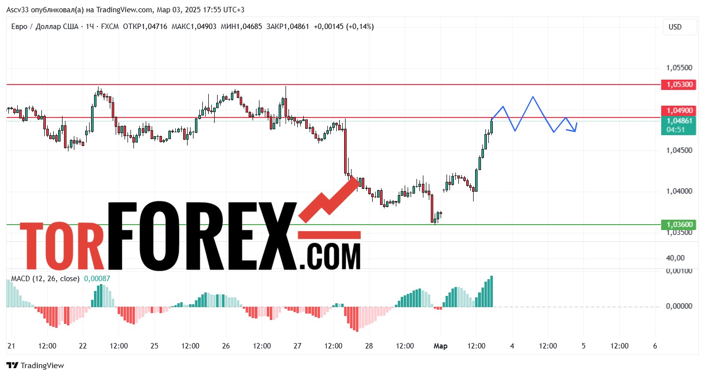 В ближайшие сутки пара EUR/USD, вероятно, будет колебаться в диапазоне 1,0360–1,0530. Трейдерам рекомендуется внимательно следить за реакцией цены на указанные уровни поддержки и сопротивления. Пробой ниже 1,0360 может усилить нисходящее движение, тогда как уверенный рост выше 1,04900 может стать признаком краткосрочной коррекции.