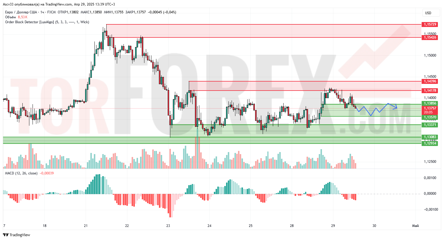 Прогноз Евро Доллар EUR/USD на 30 апреля 2025