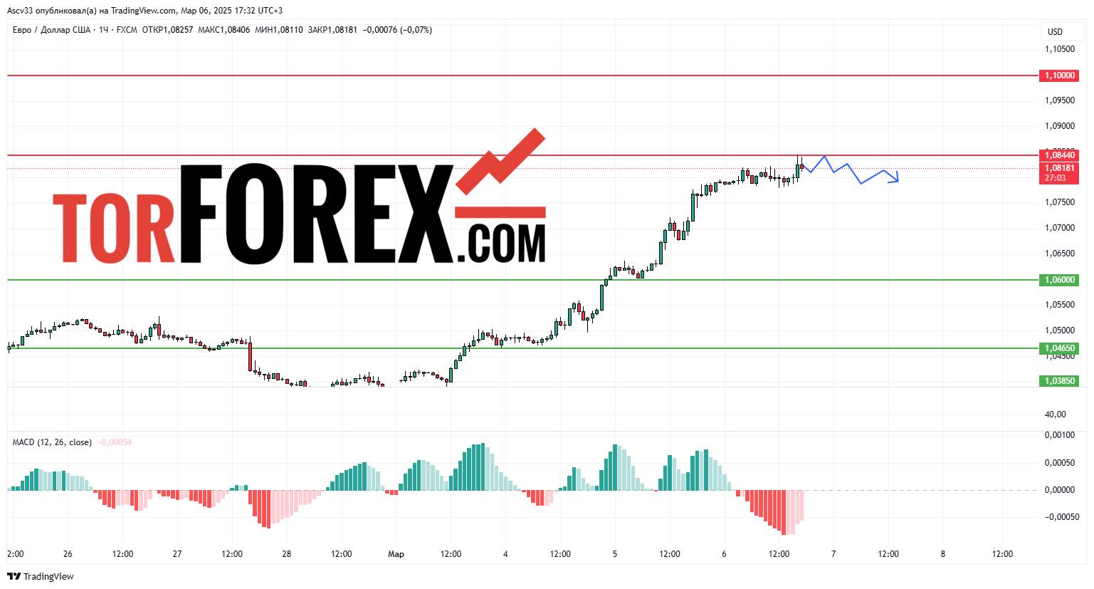 В течение следующих 24 часов пара EUR/USD, вероятно, останется в диапазоне 1,0600–1,0844. Если цена закрепится выше 1,0844, это создаст условия для дальнейшего роста, в то время как пробой 1,0600 вниз может усилить коррекцию в пользу доллара. Трейдерам следует внимательно следить за реакцией рынка на этих уровнях, так как их пробой задаст новое направление движения.